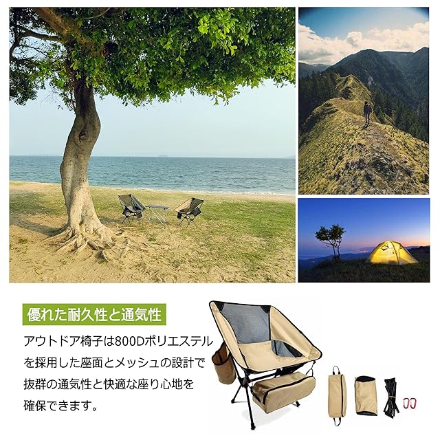 【優れた耐久性と通気性】アウトドア椅子は800Dポリエステルを採用した座面とメッシュの設計で、暑い季節も蒸し暑くなく、抜群の通気性と快適な座り心地を確保できます。座面も防水加工し、雨でもタオルでちょっと拭くだけ座れます。さらに、座面を深くし、ハンモックのように体にフィットし、ゆったりと包み込まれる座り心地を実現したレジャーチェアです。