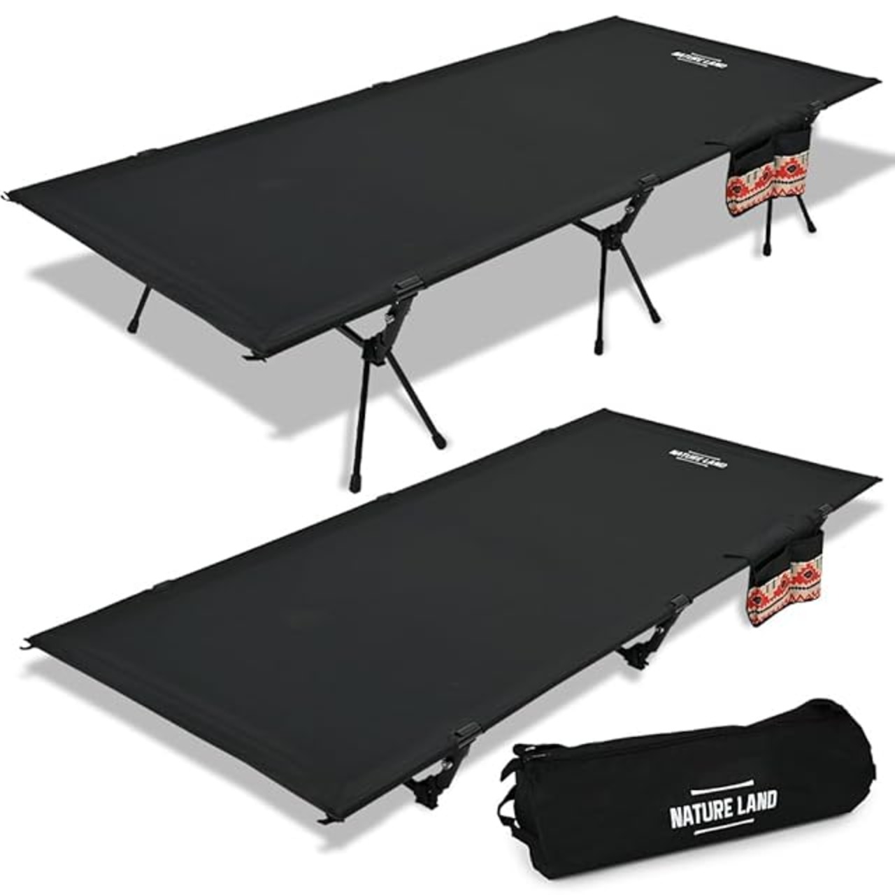 【キャンプインストラクター推薦】 コット ワイド 90cm キャンプ 2WAY 600D 軽量 耐荷重 150kg キャンプコット 静音 折りたたみ式 ハイ ロー 切替可能 防災 防災グッズ NATURE LAND (ブラック)