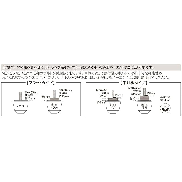 ホンダ、スズキ、車純正M6タイプ(純正ハンドルバー用)に対応したバーエンドです。