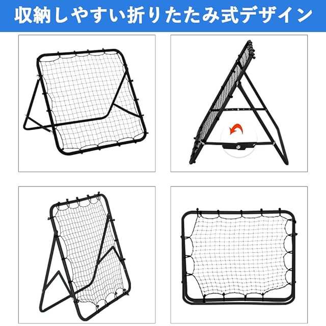 【角度調節可能・優れた弾力性】フレームはワンタッチで角度調整可能、ボール種類、シュート習慣や身長に合わせて無段階の角度変更でき、トレーニングの難易度も変更可能となります。ネットには優れた弾力性のあるポリエステル素材を採用し、当てたボールをしっかりと跳ね返ります。