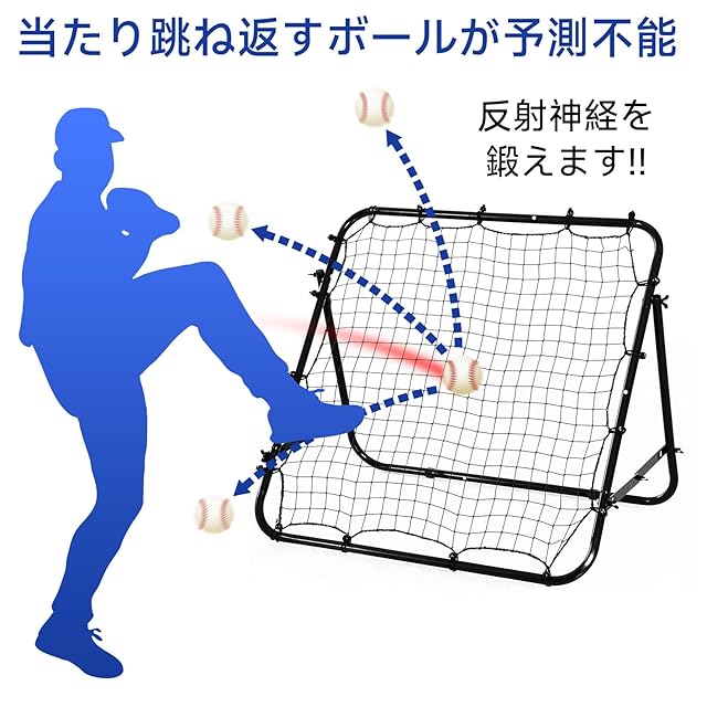 ⚾【効率的なトレーニング】リバウンドネットに当たり跳ね返すボールが予測不能だから反射神経を鍛えられます。投げ方や速さで投げたボールが返る際にのボールが変化するので、キックやトラップ、パスの反復練習に最適。サッカーが好きな方へのプレゼントとしては最適です。