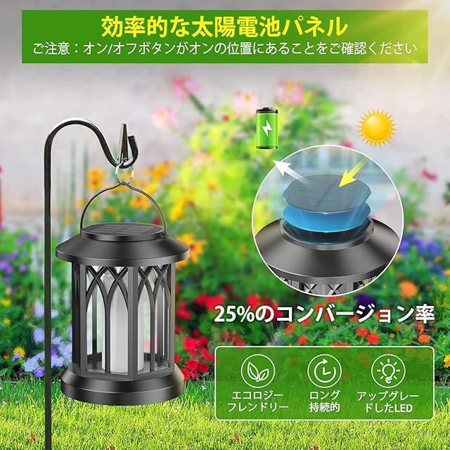 【ギフトに最適&100%満足】屋外ソーラーライトの炎の揺らぎ効果は、家の周りを生き生きとさせ、恋人や母の日、祝い、ガーデニングなどの贈り物にも最適です。本ソーラーランタンには、購入日から12ヶ月以内に製品の性能、品質、色にご満足いただけない場合には、全力で良いアフターサービスを提供する100%満足が付いています。