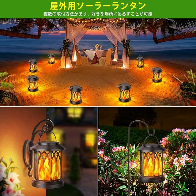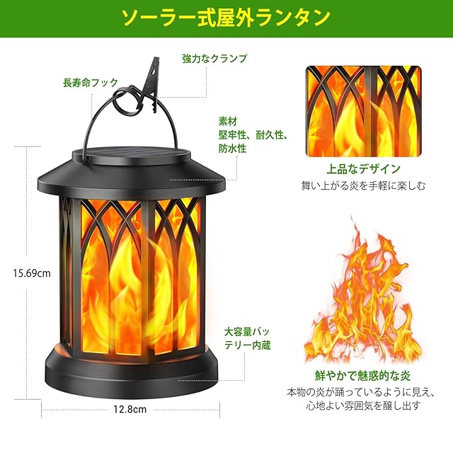 Letmy ソーラーランタン ゆられる 火炎 ソーラーライト 屋外 ソーラーガーデンライト 防水 飾り LED 太陽光パネル充電 夜明け 自動オン/オフ パティオ、玄関、パーティーなどに適用 2個セット | Trend Design BASE店