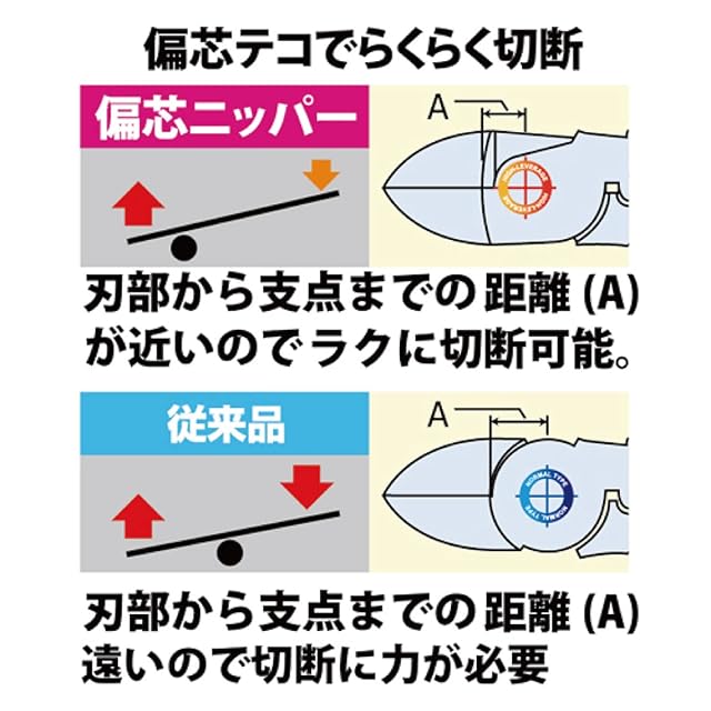 商品名:フジ矢(Fujiya) 偏芯強力ニッパ(黒金・シャックル付)200㎜ 偏芯テコでらくらく切断 700N-200BG