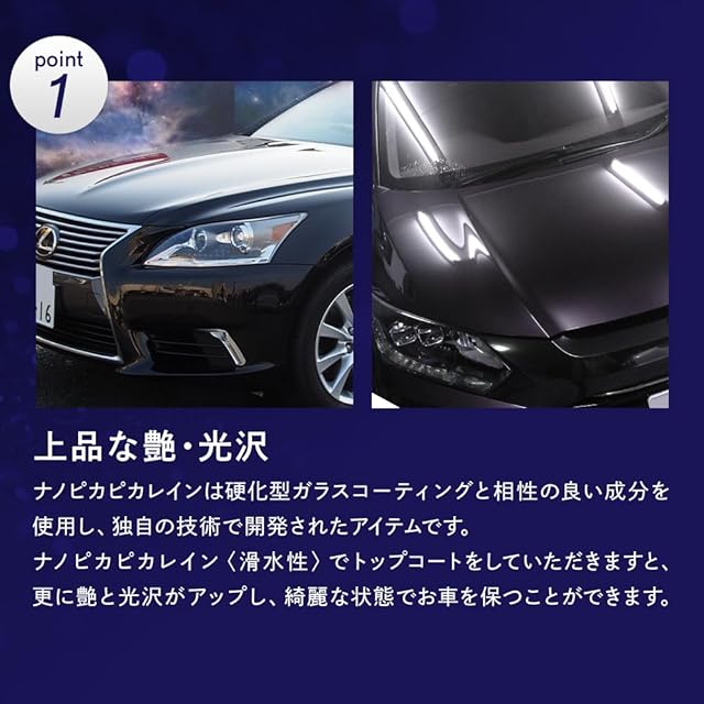 ナノピカピカレイン滑水性は上質な艶・光沢で愛車を美しくキープ!ガラス被膜の保護にも◎