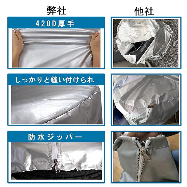 【防水防風設計】防水ジッパーデザイン、裾のところに調節可能なコードロック付き。チャックで閉めたあと、コードロックで絞れるので、しっかりタイヤを収納できます強風の場合でも、カバーが吹き飛ばされる心配はありません