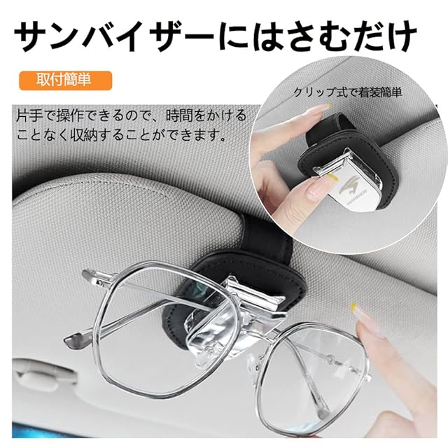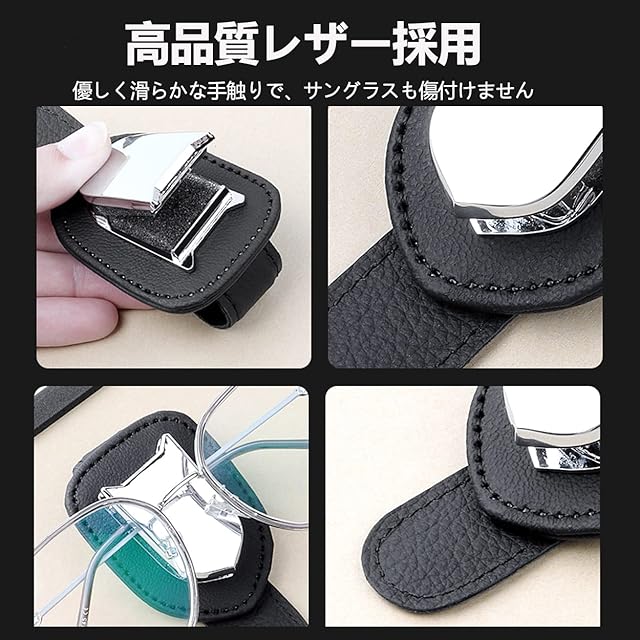 商品名:ハリアー 用 メガネホルダー レザー サングラスクリップ カーサンバイザー 用 サングラス 眼鏡 チケット カード クリップ ホルダー メガネクリップ 車眼鏡ホルダー 取り付け簡単 選べる4色 (Black)