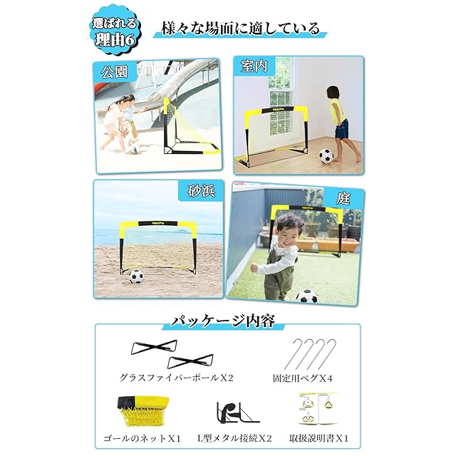 【様々な場所で使える・サッカー上達対策】サッカーが上達する環境を作らなくても、自宅の庭や、公園、室内のフットサルでも使える折りたたみサッカーゴールです。また部活、運動会、サークル活動などの使用を広く想定しています。