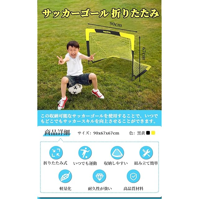 商品名:サッカーゴール 折りたたみ サッカーゴール 子供用 サッカー ゴール 室内 屋外兼用 フットサル用ゴール ポータブルサッカーゴール 90*67*67cm Happy Jump