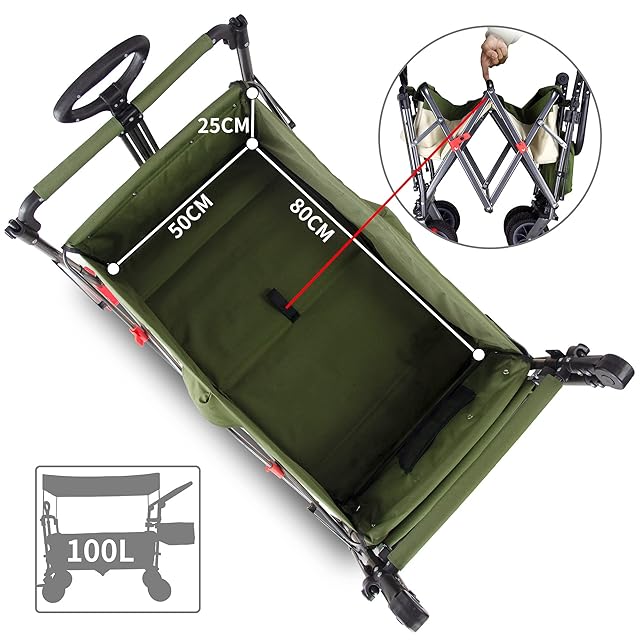商品名:TMZ折りたたみ式全地形ガーデン車両、屋外キャンプキャンプ車両、取り外し可能なルーフ、伸縮式プルロッド、マルチスピード調整可能プッシュロッド、特許取得済みの後輪回転折りたたみ式車両、100リットルの 最大負荷120KG (ベージュ/グリーン)