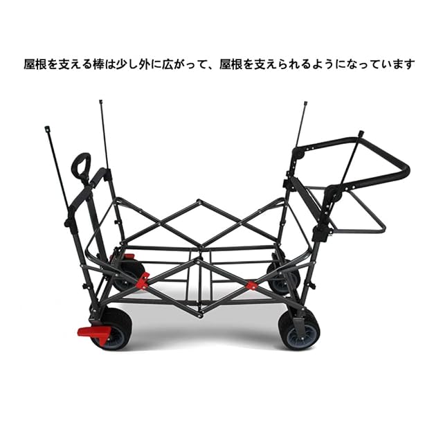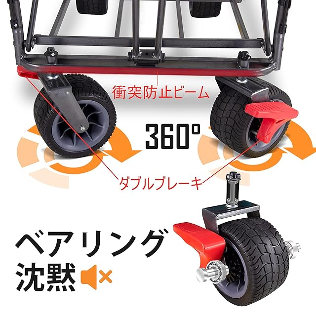 100L大容量で嵩張る荷物や重い荷物を一度で運べ、駐車場からの荷物運びは往復しなくて済むので、キャンプや運動会、イベント、釣りなどの場面にはもちろん、買い物などの日常生活でも大変役に立ってくれます。折りたたみ車機能:屋根が取り外せ、フロントハンドルと後押しハンドル付き、プッシュプル可能、前ハンドルの長さと後ハンドルの高さを調整できます。 前輪は360度回転し、よりスムーズな走行が可能。 着脱可能、折りたたみ式バスケットは小物を収納できます。 フロントダブルブレーキ設計、いつでもブレーキできます。