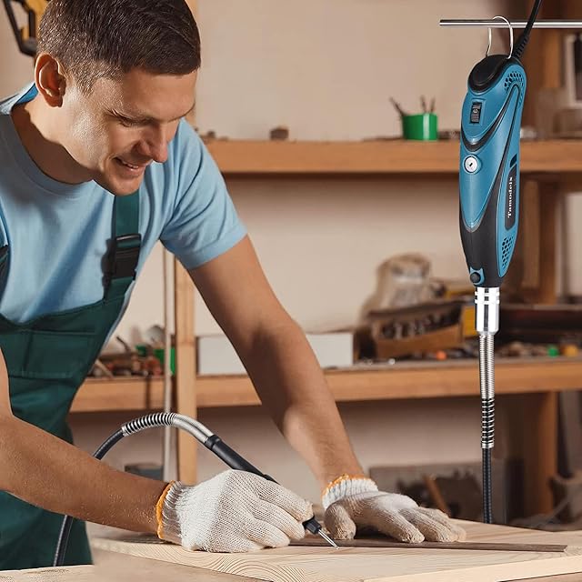 【4つのアタッチメント付属】フレックスシャフト、ディテーラーグリップ、シールドアタッチメント、カッティングガイド、アタッチメントが付属されており、狭い箇所での作業・火花が出る作業・正確な作業などの場面で活躍します。ガラスエッチングやレザー加工、つや出し等様々な用途に使用可能。