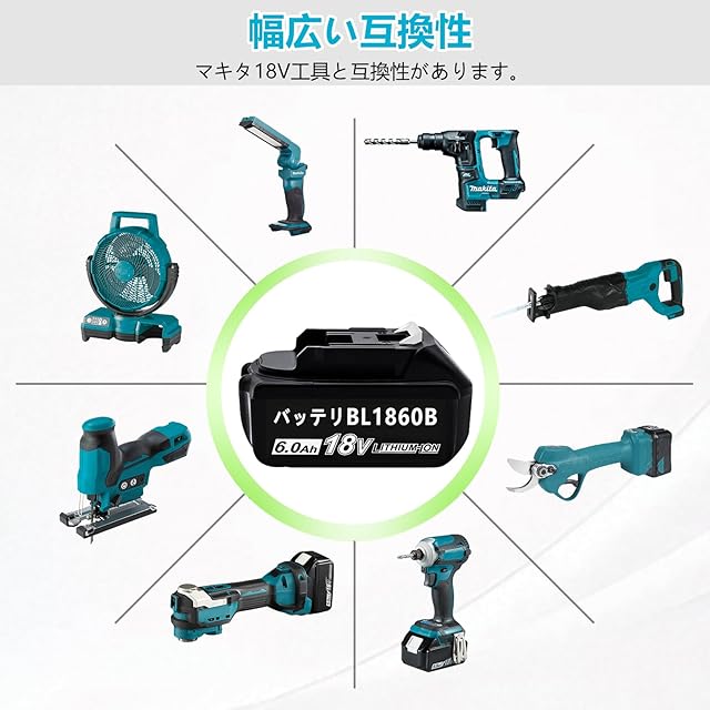 交換可能:マキタ バッテリー BL1815 BL1830 BL1840 BL1850 BL1860 BL1890 194205-3 194230-4 LXT400、急速充電器DC18RC、DC18RA、DC18RFなど対応できます。