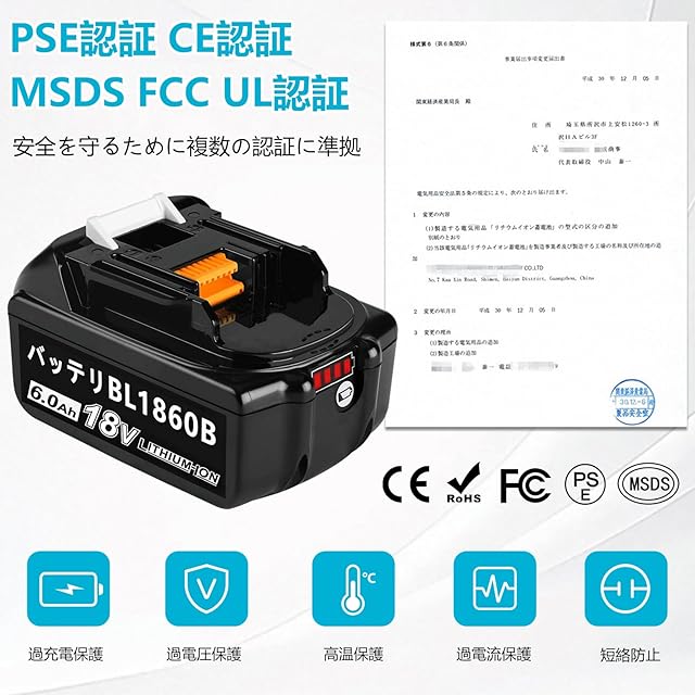 商品名:マキタ バッテリー 18v 互換 bl1860b: 対応 マキタ 6.0Ah BL1830 BL1840 BL1850 BL1860 BL1830b BL1840b BL1850b リチウムイオン 電池 LED残量表示付き 電動工具用 マキタ互換バッテリー1個セット