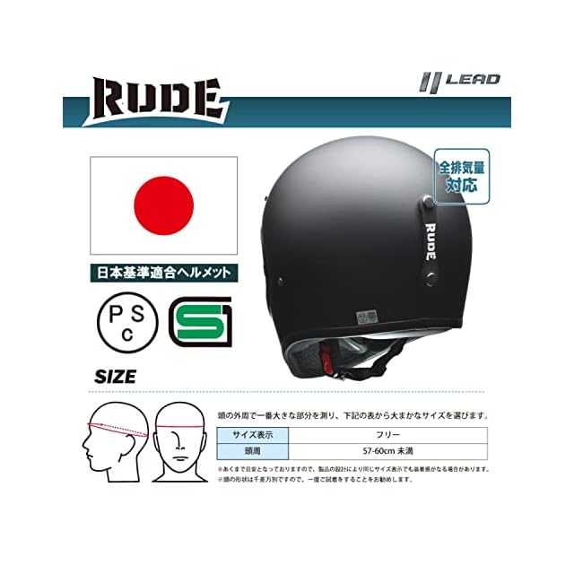 商品名:リード工業(LEAD) バイク用 フルフェイス スクランブラーヘルメット RUDE (ルード) マットブラック フリーサイズ (57-60cm未満)