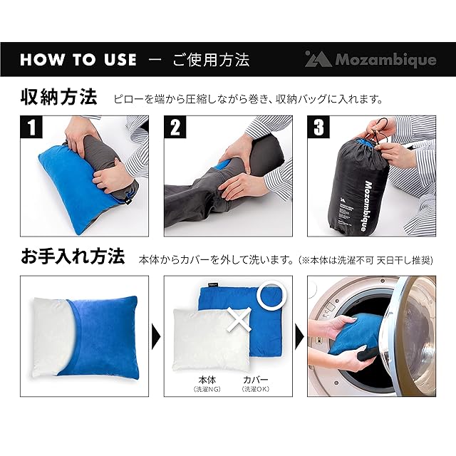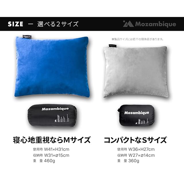 商品名:Mozambique(モザンビーク) キャンプ 枕 ピロー トラベルピロー 携帯枕 アウトドア コンパクト 車中泊【プレミアムな寝心地を追求したキャンプ枕】 (Sサイズ, ブルー)