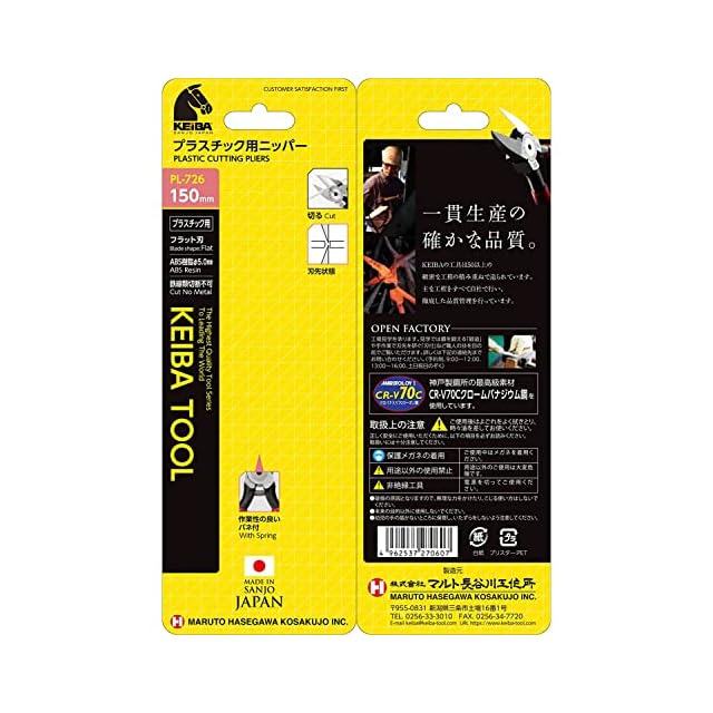 商品名:ケイバ プラスチック用ニッパー 刃先形状フラット 150mm PL-726