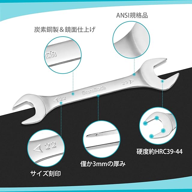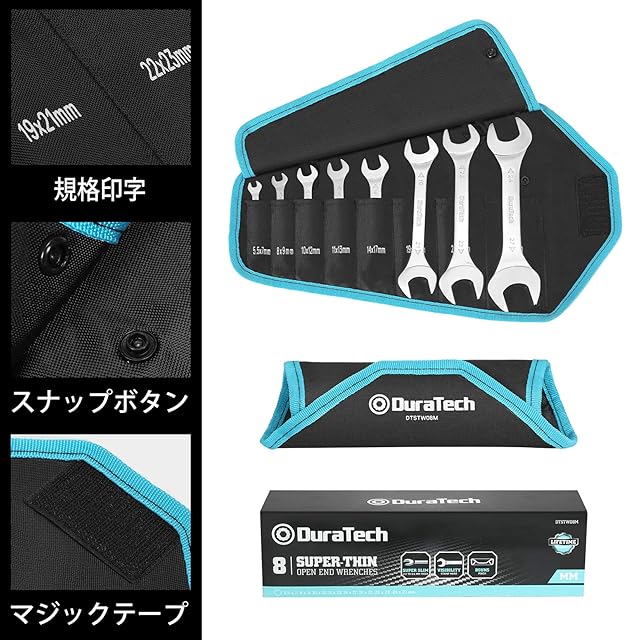 商品名:DURATECH 極薄スパナ 薄型 スパナセット 8本組 ショートタイプ 両口 ミニ レンチセット 厚さ3mm 5.5~27mm 鏡面仕上げ済 収納袋付