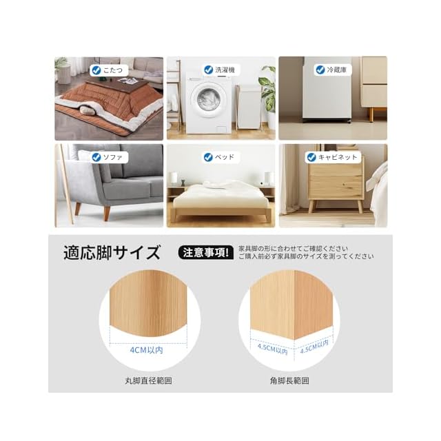 ZDDLOINP 高さ調整 テーブル 10cm上げる テーブル 脚 継ぎ足し テーブル高さ調整器具 こたつの高さを上げる足 ソファー 高さ上げ ベッド・コタツ 足上げ 滑り止め 床に傷防止 足なしの家電・家具向け | Trend Design BASE店