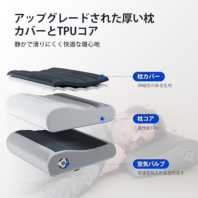 【洗濯簡単】枕カバーを洗濯したいときも心配ありません。枕カバーは取り外して洗えます。さらに、特殊な素材で作られた枕の芯は、膨らませた後も長期間漏れないことをします。