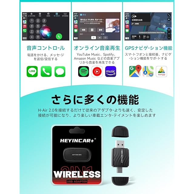 【両端ヘッドのデザイン ワイヤレスアダプター最新登場】HEYINCAR+ ワイヤレスCarPlay/Android Auto アダプター CarPlay&AndroidAutoをワイヤレス化 アダプタケーブル不要 純正な有線CarPlay/Android Auto搭載する車専用 Bluetooth/音楽/多言語対応 ワイヤレスディスプレイアダプター 自動接続 技適認証取得済み 日本語取扱説明書付き | Trend Design BASE店