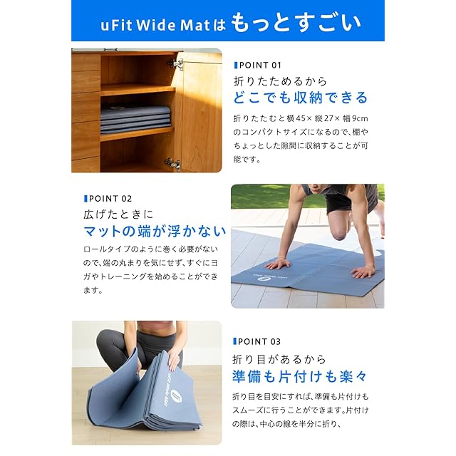 商品名:【日本国内メーカー】uFit Widemat ワイドマット ヨガマット 折りたたみ 幅広 大きめ 6mm 痛くない 滑らない 90cm×200cm プロアスリート 水谷隼 愛用 PVC 洗える 臭くない 低反発 持ち運び (ブラック)