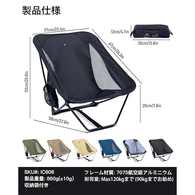 Black(ブラック)、0.86kg超軽量、折りたたみ、コンパクト、あぐらチェア、ローチェア