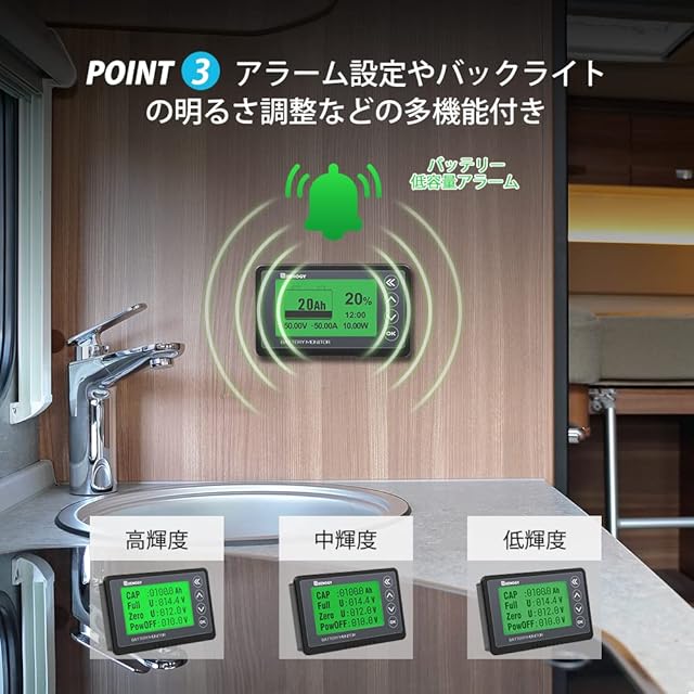 商品名:Renogy バッテリーモニター 電圧計&電流計 ブラック