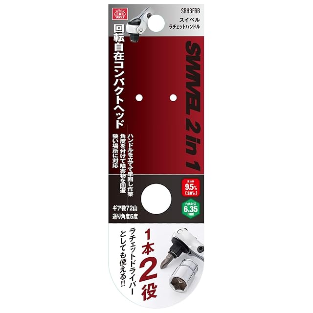 商品名:SK11(エスケー11) スイベルラチェットハンドル 72山 差込角9.5mm/六角対辺6.35mm SRH3FRB