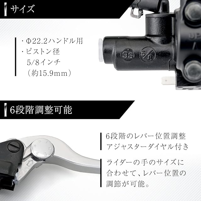 ハンドル径φ22.2専用6段階調整レバーカラー:ブラックボディ/バフクリアーレバー