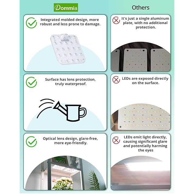 先進的な光学レンズカバー-DOMMIAアップグレードされた植物用ledライトを使用して、比類のない成長を体験します。この革新的な植物光は光学レンズと薄いアルミニウム板を持ち、光エネルギーを集中させ、95%以上の効率を確保することができる。観葉植物 ライト、最適なカバーと最大吸収を提供し、優れた効果を提供します。蓋は防水、静電気防止。