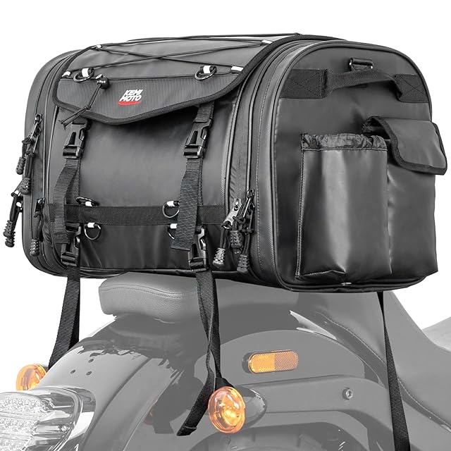KEMIMOTO シートバッグ PVC防水素材 拡張機能あり 45-65L ツーリングバッグ レインカバー付き 全方位防水性 バイク リアバッグ 変形しにくい 荷物固定ベルト付き 上部積載可能 キャンピングシートバッグ バイク用品 汎用性 Ninja400/ZX-25R/V-STROM250/CBR400R/GSX-S1000/GIXXER250ほとんどのオートバイに適用 | Trend Design BASE店