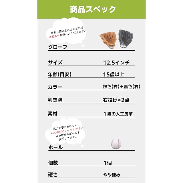 届いてすぐにキャッチボールができるように、大人用グローブ2点とボール1点が付いたお得なセットです。 本商品は、【右投げ×2点+ボール1点のセット】です。