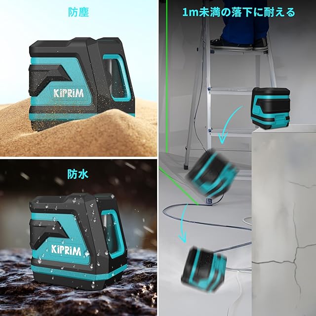 商品名:Kiprim レーザー墨出し器 墨出しレーザー 視認性向上、明るさ調整可能、手動/自動水平/パルスモード、レーザー安全基準:クラス2 電池とキャリングポーチ付属 日本語説明書付き LV8