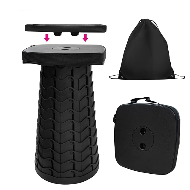 折りたたみ椅子 UP2U 伸縮式 イス クッション付き 1秒開閉可能 10段階調節可能 軽量 耐荷重220kg アウトドアチェア 持ち運び 防水 伸縮式スツール キャンプ 釣り 花見 体育会 (Black)