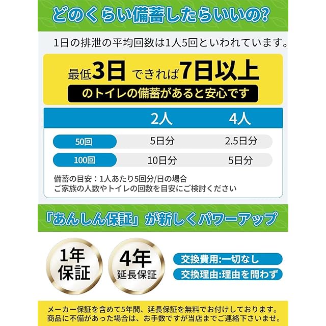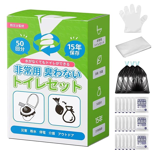 【充実なセット内容&品質】◆ひも付きの汚物袋 X50枚 ◆凝固剤 X50個、◆防臭袋 X5枚 ◆ビニール手袋 X50枚 ◆説明書 X1枚 ✬弊社より簡易トイレセットを検品しておりますが、万が一、当社の製品に不良などが発生した場合、またはその他の事由で交換されたい場合には、注文番号を記载の上、購入サイト内お買上けの販売店にご連絡を下さいませ。返金か新品交換をさせていただきます。