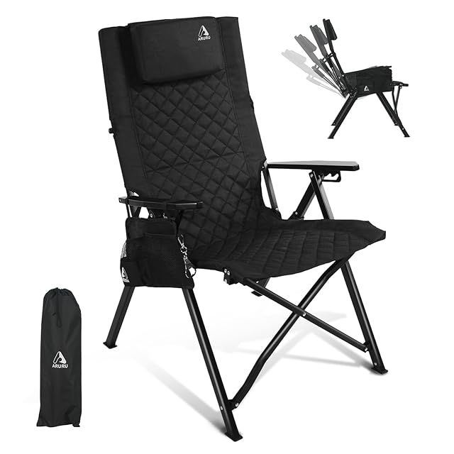 ARURUキャンプ用リクライニングチェア、ヘッドレスト付き4段階傾斜ハイバック椅子、コンパクトに折りたたみ可能なアウトドアチェア、そして便利な収納袋付き(ブラック) | Trend Design BASE店