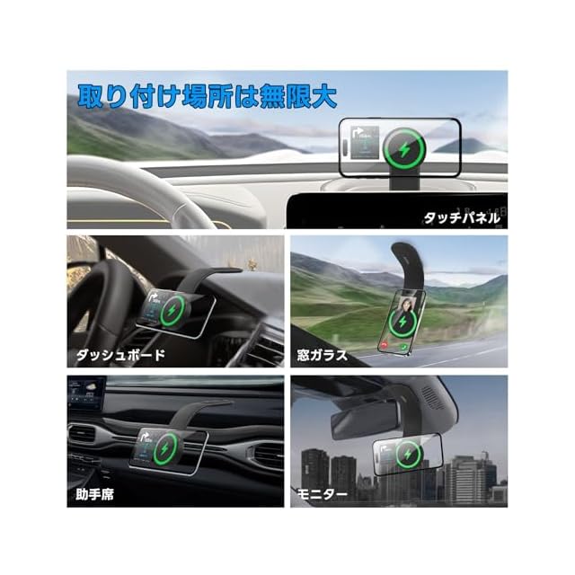 商品名:Athvcht スマホホルダー 車 ワイヤレス充電 車載スマホホルダー マグネット magsafe 車載ホルダー 15W急速充電 マグセーフ充電器 車 携帯ホルダー 折り畳み可能 形状記憶合金 超強磁力吸着 安定性拔群 自由調整 片手操作 3M粘着テープ 繰り返し利用可能 車用品 カー用品 iPhone/Android全機種対応・全車種対応 ノートパソコン スタンド 縦置き (ワイヤレス充電)