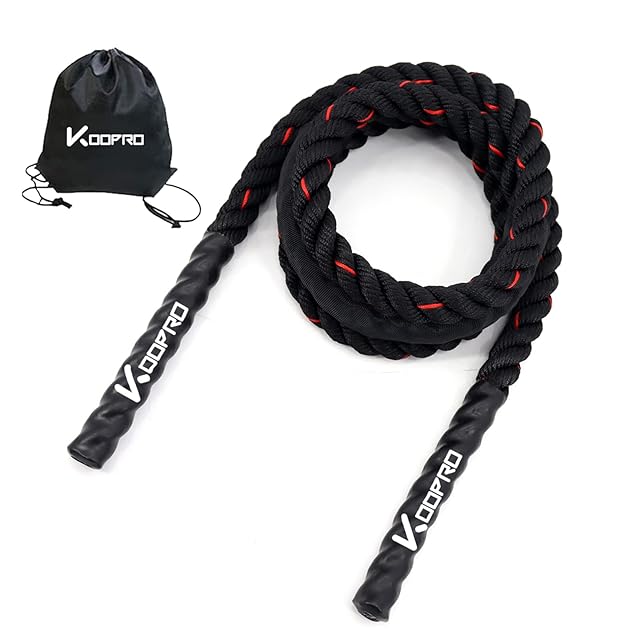 <b>Koopro 高品質 ヘビー 縄跳び</b><br>体力・筋肉・バランスが身に付く効果的なトレーニング<br><b>どうしてKooproのヘビー 縄跳び選びます</b><br>短時間振り続けるだけでも激しい運動量で心拍数が上がり汗だくになります。<br>ジムロープトレーニングでカロリーを大量に消費し脂肪燃焼を助けます。<br>パワー強化、スタミナUPと持久力を向上させ握力も強化出来ます。<br>上半身のみでなく下半身にも効果的。<br>初心者の方は勿論、上級者でも満足の行くトレーニングが可能です。<br><b>製品仕様</b><br>製品名:ヘビー縄跳/フィットネストレーニングロープ/ジムロープ<br>色&サイズ:ブラック*レッド25mm*2.8M/ブラック*グリーン25mm*3M/ブラック*ブルー38mm*3M<br>素材:ポリエステル
