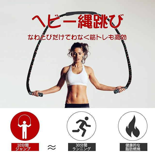 【商品名】ジムロープ、ヘビー縄跳びともいいます。(エクササイズなわとびで筋トレも効果的に出来ます。標準の縄跳びよりも重く、より多くのエネルギーを発揮して筋肉を鍛えるのに役立ちます。それは強さと運動や体力トレーニングを改善するための素晴らしいツールです。)