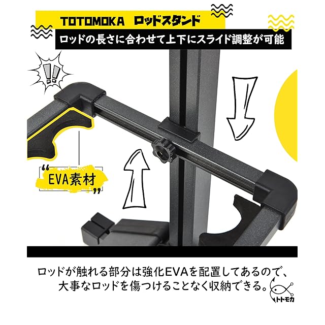 安定感抜群のアルミ製コンパクトロッドスタンド! ※ディスプレイの環境上、実際のカラーが再現できない場合がございます。備考:画像の釣竿、リール等は、撮影用ですので付属致しません。