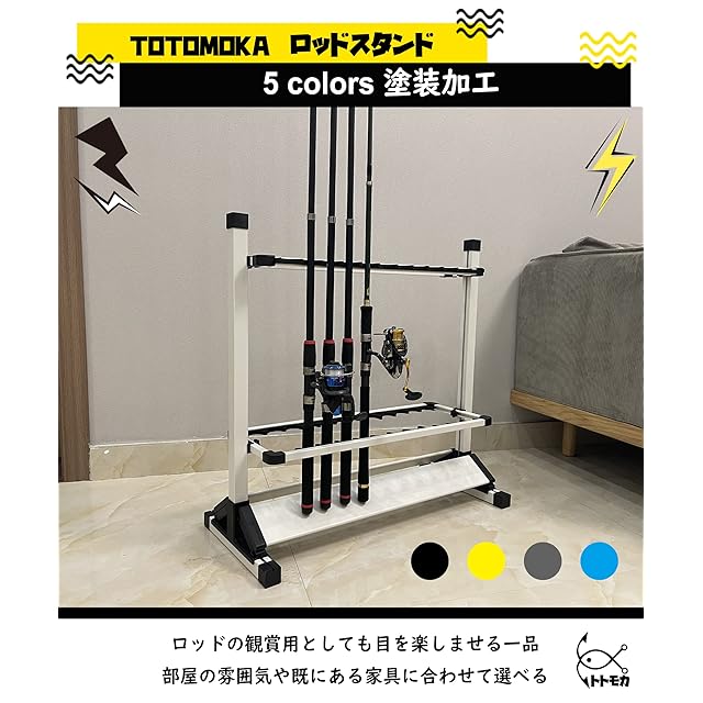 【観賞用にも最適】アルミ製ロッドスタンドは、お部屋のインテリアに映えます。塗装加工によって色鮮やかに仕上げられたアルミニウム合金は、自分の好みや置く場所の雰囲気に合わせてカラーを選べるのが嬉しいです。ロッドの観賞用としても目を楽しませる一品です。