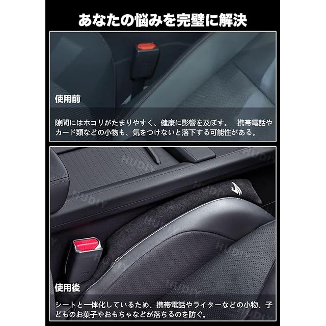 HUDIY(フーディ)車 隙間クッション 新型ハリアー80系 車用 シートサイド隙間埋め HARRIER 80系(2020年6月~現行) スエード シートコンソール サイドクッション 一体成形 車用座席漏れ防止ストリップ センター 運転席 助手席 ゴミ小物類 落下防止 プリントロゴ入り小物入れ 2本セット | Trend Design BASE店