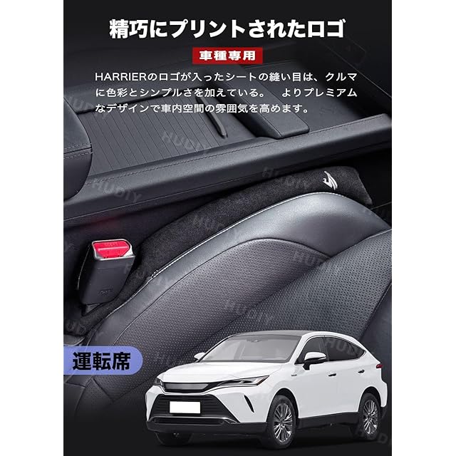 商品名:HUDIY(フーディ)車 隙間クッション 新型ハリアー80系 車用 シートサイド隙間埋め HARRIER 80系(2020年6月~現行) スエード シートコンソール サイドクッション 一体成形 車用座席漏れ防止ストリップ センター 運転席 助手席 ゴミ小物類 落下防止 プリントロゴ入り小物入れ 2本セット