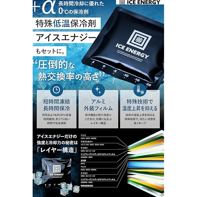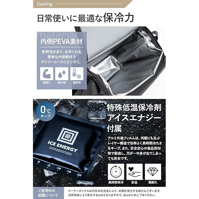 【保冷剤付き&6時間保冷】 付属の保冷剤や氷を入れれば、最大6時間の保冷が可能(氷が完全に溶けるまで)。買い物帰りや夏のアウトドアも安心。アイスエナジー とのセット販売