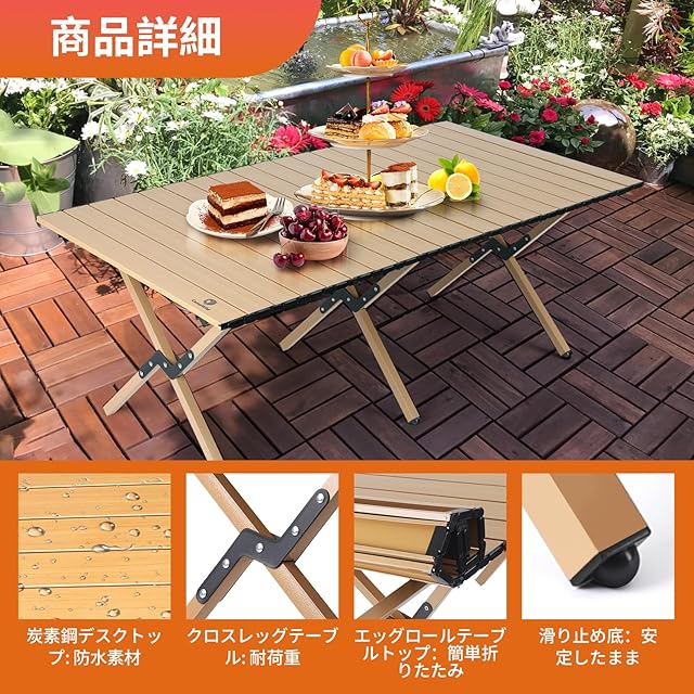 便利で多機能なデザイン:この折りたたみ式キャンプテーブルは、幅120cm、長さ60cm、高さ45cmというサイズで、アウトドアキャンプやハイキング、バーベキューなどの屋外アクティビティだけでなく、室内のダイニングテーブルやパーティーでも活躍します。屋外の自然環境でも、屋内の快適な場所でも、様々な用途で利用できます。