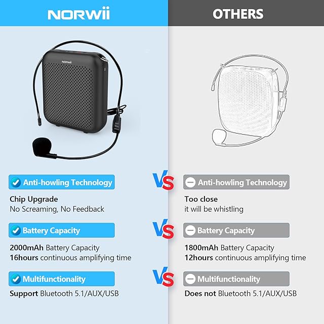 商品名:NORWII拡声器ポータブル充電式ミニ音声増幅器、有線マイクイヤホンヘッドセット、教師用音声増幅器、プレゼンテーション、ツアーガイド、会議、コーチ、トレーニングをサポート