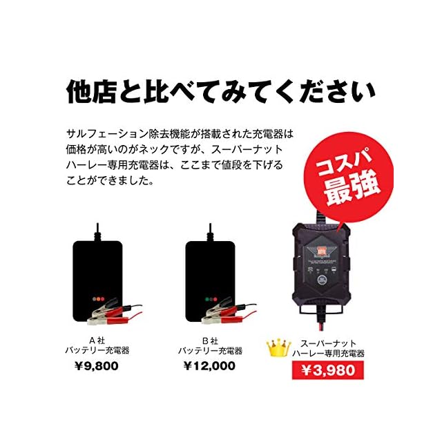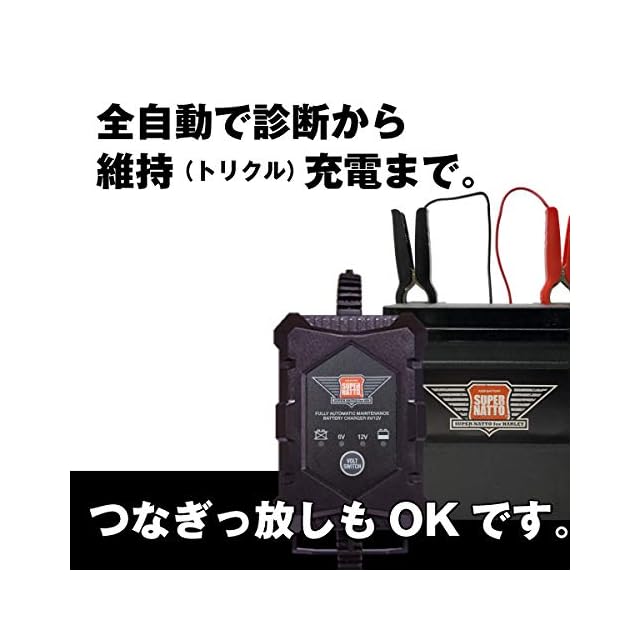 ハーレー専用バッテリー充電器(6V/12V切替式)【サルフェーション 除去機能】シンプル操作】 【自動電圧調整】トリクル 充電 機能で 冬の間もつけっぱなしOK! | Trend Design BASE店