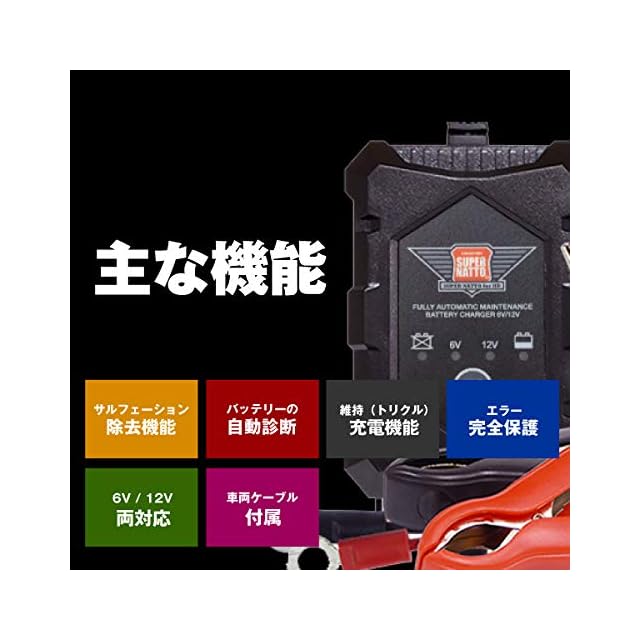 6Vまたは12Vバイク用鉛バッテリー(密閉型・シールド型・開放型、全対応)。対応バッテリー容量:1.2Ahから24Ah。 当商品は新品となります。 販売店24ヶ月・PL保険付・PSE新基準対応。生産工場:Made in China