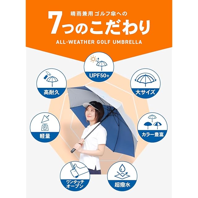 ✅【晴雨兼用で使える99%UVカット】ゴルフのラウンド中や、普段使い・屋外のスポーツ観戦・お子様の学校行事の時など、屋外のUV対策に日傘としてもご利用いただける様、PYKES PEAK(パイクスピーク)では「99%UVカット UPF50+」の素材を採用しておりますので、晴雨兼用でご利用いただけます。